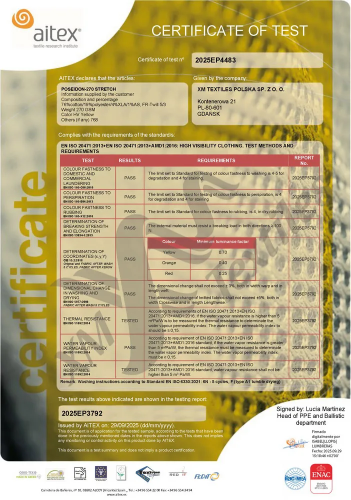 XM FireLine™ designs and manufactures Flame Retardant fabrics for Protective and FR clothing. All our FR fabrics resists 50/100 wash cycles and certified to ISO 11612, ISO 11611 or NFPA 2112. We test every production lot to deliver you 100% quality. With stocks in Asia and Europe, we ship our FR fabrics in 51 countries on 6 continents.