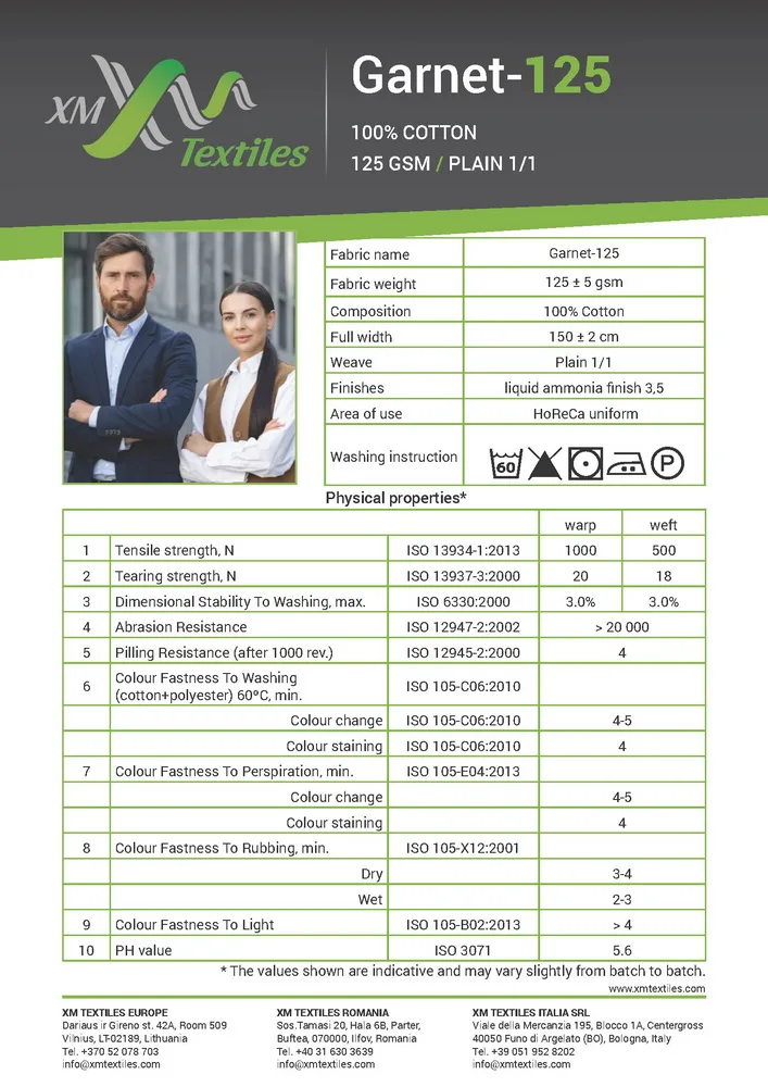 HomeCertificates, Test-reports & TDSXM TextilesGarnet-124 Technical datasheet Garnet-124 Technical datasheet March 19, 2026 Download GARNET-125