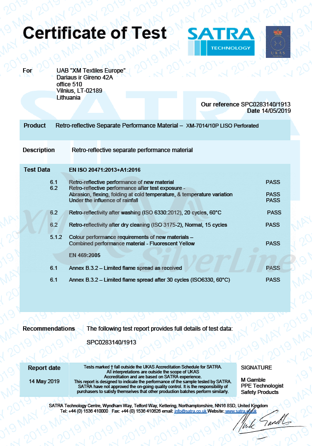 Se puede coser en ropa ignífuga o chaquetas/pantalones de bomberos. Producimos y vendemos XM-7104 / 10P cinta reflectante resistente a las llamas con alta calidad y a un precio muy competitivo. Esta cinta reflectante no se quema ni se enciende incluso después de 30 ciclos de lavados domésticos a 60 ° C. Este material reflectante es un tejido textil recubierto con una capa de resina con numerosas microlentes de vidrio impregnadas con un pegamento especial en esta capa. La luz se refleja en estas microlentes y regresa al automóvil (u otra fuente de luz) haciendo que la persona que usa cinta reflectante sea más visible en la oscuridad.