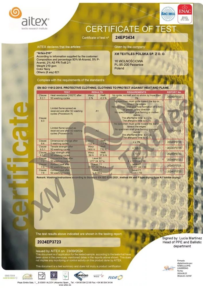 ГлавнаяСертификаты и СпецификацииXM FireLineArtex-210 EN 11612 (50×60°C) Artex-210 EN 11612 (50×60°C)50×60°C, Artex-210, EN 11612, XM FireLine / 30 апреля, 2026 Download ARTEX-210