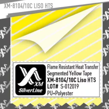 Segmented reflective tape XM-8104/10C with flame retardant properties. Yellow stripes cut diagonally, the space in between allow more flexibility and breathability to the wearer./p>